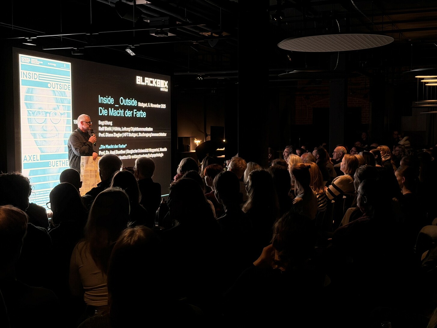 In seinem Vortrag „Die Macht der Farbe“ gab Professor Axel Buether vor über 170 Gästen in der Blackbox Einblicke und Hintergründe zur Entschlüsselung der subjektiven Farbwahl.