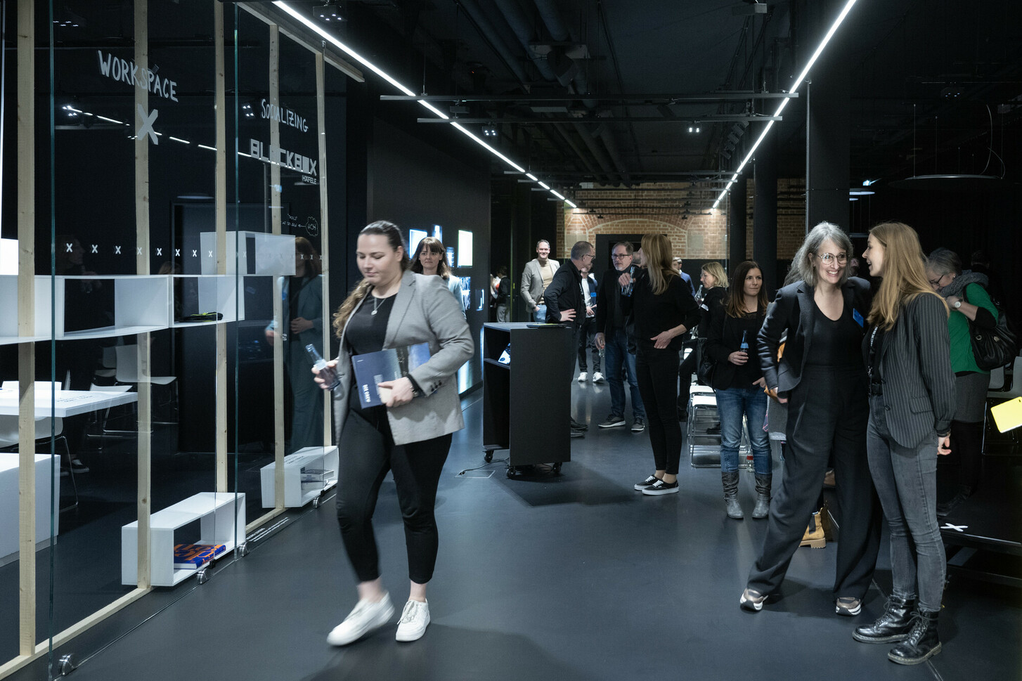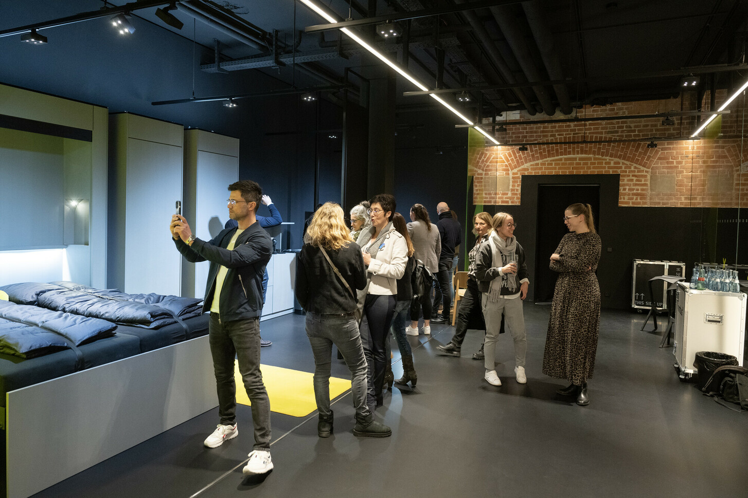 Inspirierende Impulsvorträge zu unseren Innovationsthemen Konnektivität und die Mehrfachnutzung von Räumen – zusammen mit dem Team von jangled nerves und dem Objekt-Kommunikations Team von Häfele/Nimbus begeisterten das Publikum. Mit einem guten Glas Wein aus den Beständen lokaler Winzer fand das Event einen entspannten Ausklang.